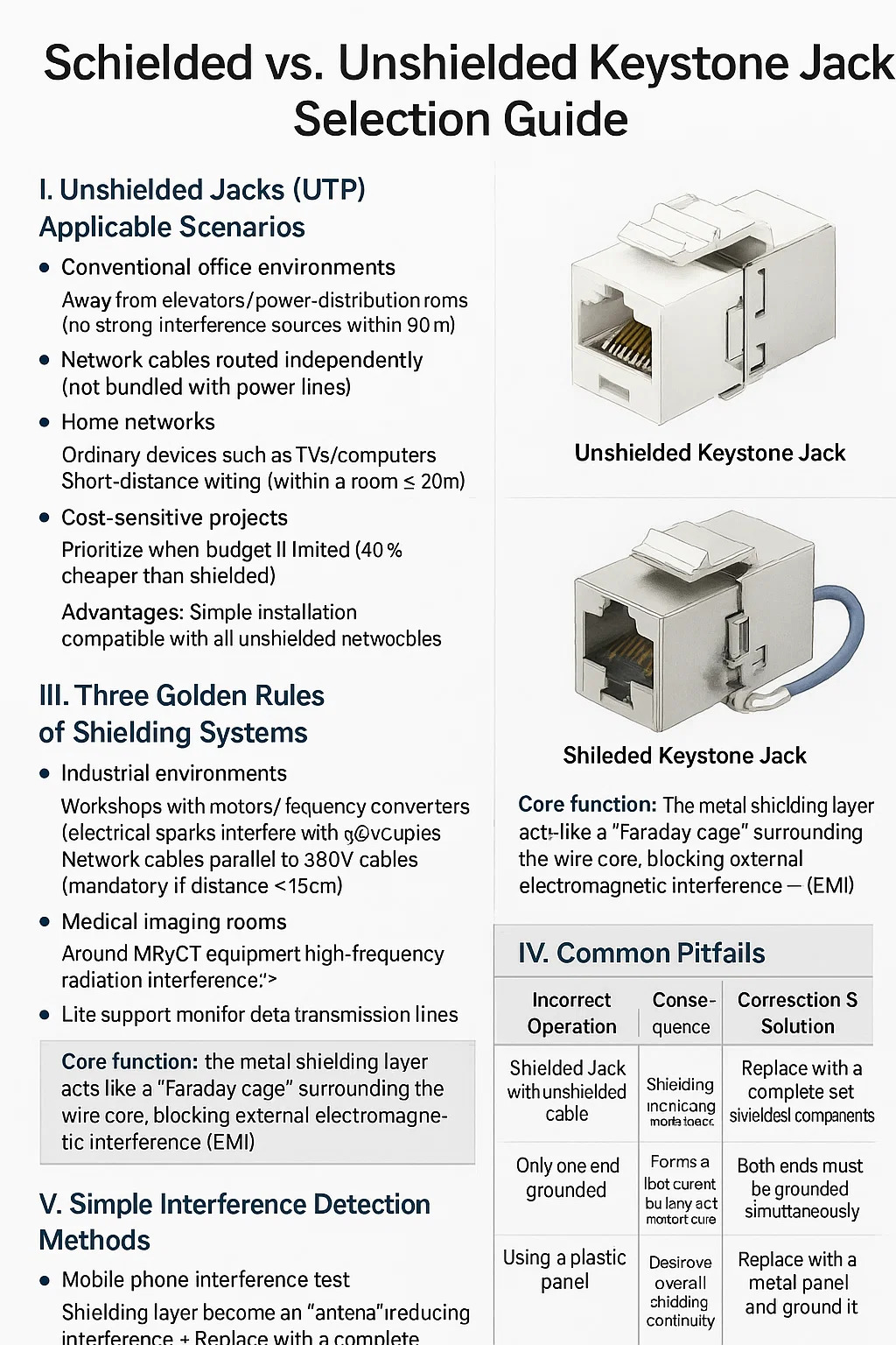 Mrežni kabel Keystone Jack RJ45 konektori moraju svi biti zaštićeni (kvar bilo koje komponente čini sustav neučinkovitim)