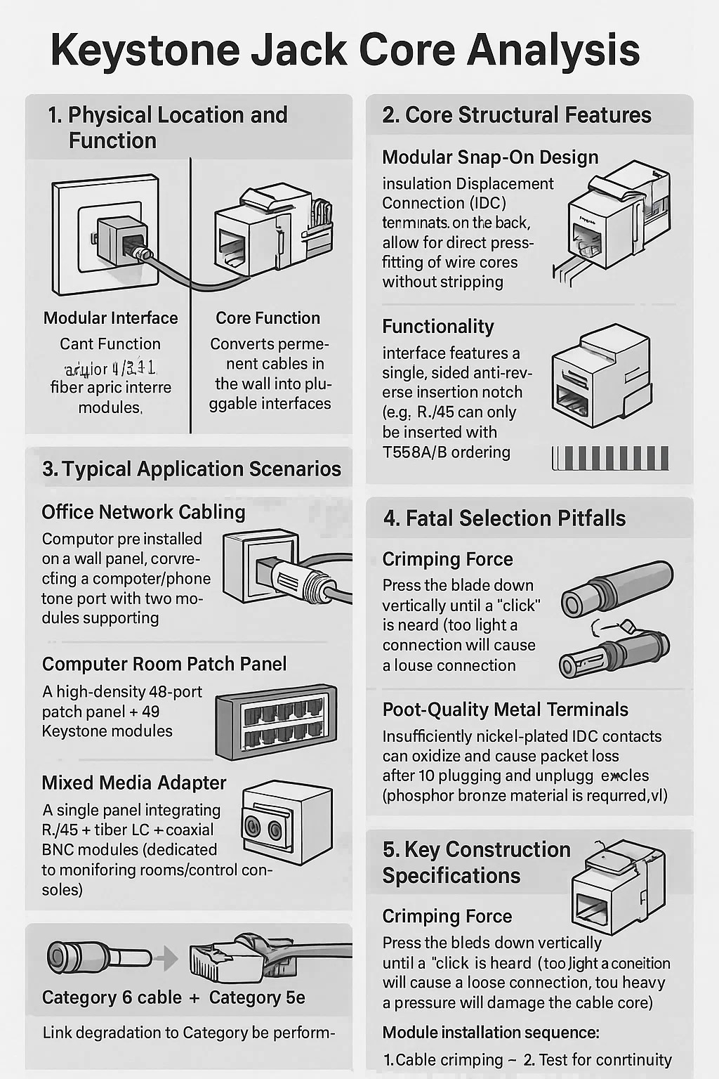 Kablov ureda: Keystone unaprijed instaliran na zidnoj ploči, povezujući računalo/telefon (jedan priključak s dva modula koji podržavaju podatke i glas). Panel za patch računala: panela za patch visoke gustoće 48-port = 48 modula s ključem (lakše za održavanje od modela sve u jednom).